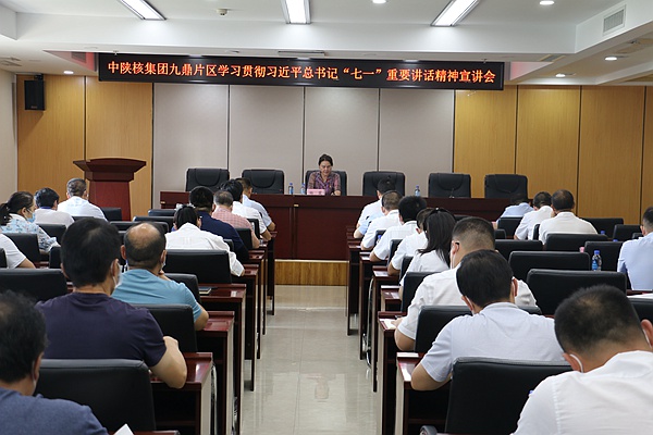 8月3日,中陜核集團(tuán)公司學(xué)習(xí)貫徹習(xí)近平總書記“七一”重要講話精神宣講團(tuán)第七宣講組到九鼎片區(qū)進(jìn)行宣講。宣講組長集團(tuán)黨委委員、紀(jì)委書記、省監(jiān)委駐集團(tuán)公司監(jiān)察專員楊霞作宣講報告,宣講組成員集團(tuán)公司紀(jì)委、監(jiān)察專員辦公室綜合室主任趙明學(xué)主持會議。二一四大隊、二一八大隊、宜威公司和健康產(chǎn)業(yè)四家單位的領(lǐng)導(dǎo)班子及黨員干部共50余人參會。