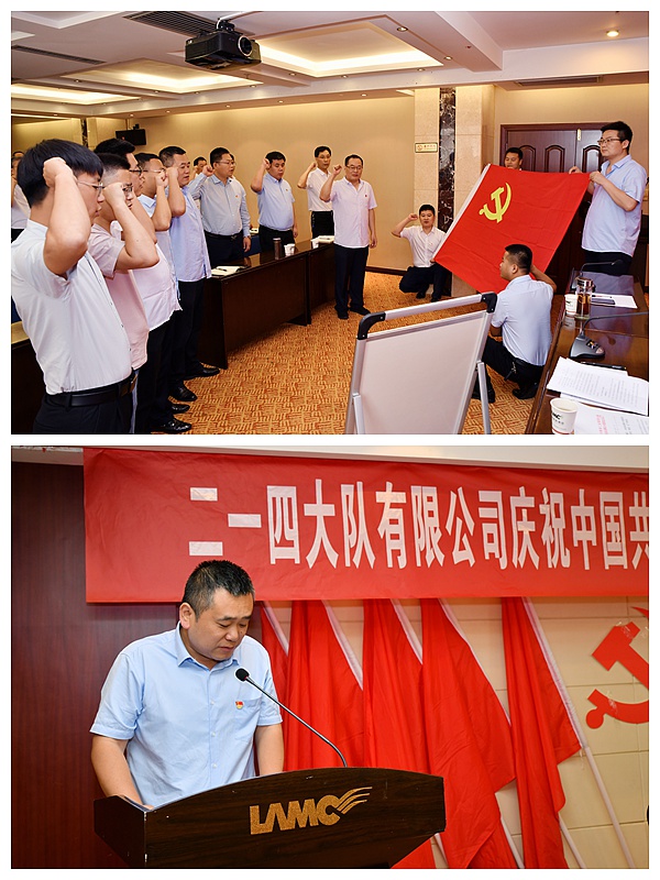 會(huì)議舉行了新黨員入黨宣誓儀式,在黨群工作部長(zhǎng)華崢領(lǐng)誓下,全體黨員和5位新黨員同志高舉右手面對(duì)鮮紅的黨旗莊嚴(yán)宣誓,老黨員重溫入黨誓詞,新黨員代表高田做了表態(tài)發(fā)言。