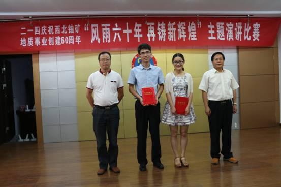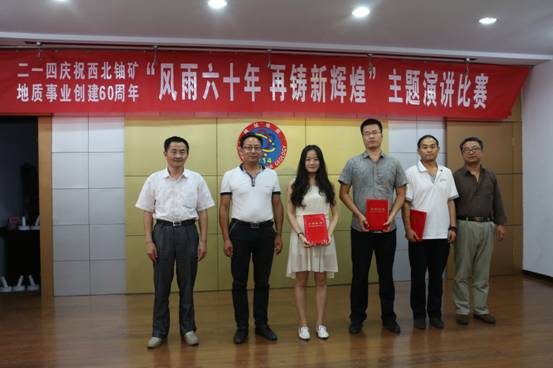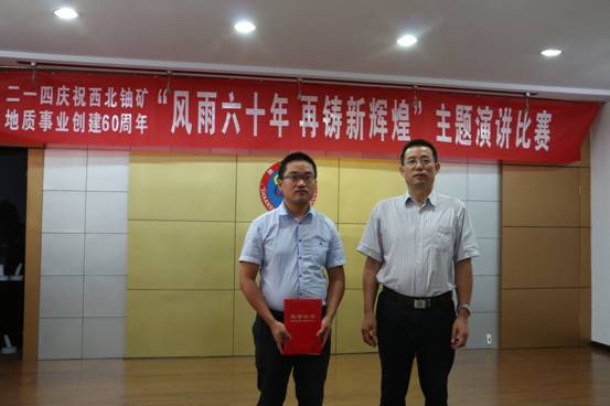 經(jīng)過激烈的角逐和評委的公開打分,行政人事部王輝演講的《讓青春永遠飛揚》,憑借聲情并茂的演繹感動全場,榮獲比賽一等獎。地調院莊紅紅演講的《追夢尋寶人》、總工辦楊鵬演講的《征程之路-新輝煌》榮獲二等獎;離退辦韓寶明演講的《核地質人的奉獻精神》,黨群監(jiān)審部唐苾演講的《最美地質勘探隊員》,李輝演講的《風雨六十年 再創(chuàng)新輝煌》榮獲三等獎。公司黨委書記李新平、副總經(jīng)理司金強、紀委書記工會主席楊乃讓、總工程師王義忠等分別為獲獎選手頒發(fā)榮譽證書。