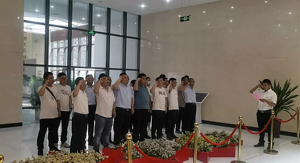 到達紀念館后,支部書記高政偉帶領全體黨員在黨旗下重溫了入黨誓詞,“我志愿加入中國共產黨,擁護黨的綱領,遵守黨的章程,履行黨員義務,執行黨的決定,嚴守黨的紀律,保守黨的秘密,對黨忠誠,積極工作,為共產主義奮斗終身,隨時準備為黨和人民犧牲一切,永不叛黨。”全體黨員整齊列隊,緊握右拳向著鮮紅的黨旗宣誓,莊嚴而堅定的宣誓聲在大廳久久回蕩。