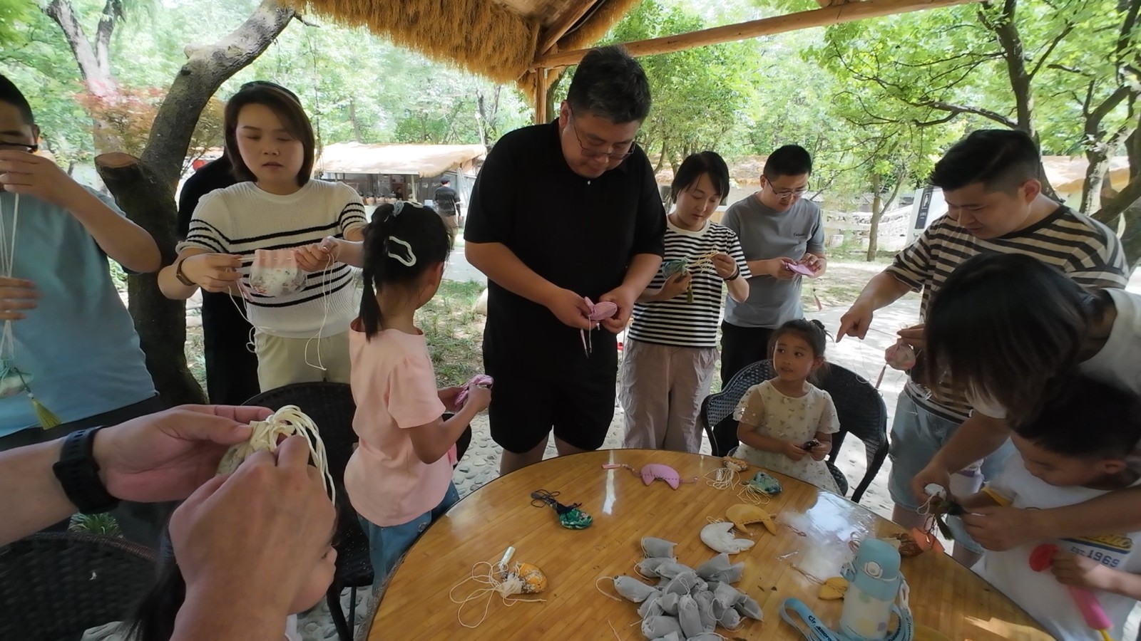 本次活動(dòng)包含“包粽子”、“香囊制作”、“趣味游戲”和“繪畫臉譜”等環(huán)節(jié)。在包粽子區(qū)域,職工和孩子們?cè)?/span>“老師傅”的指導(dǎo)下,學(xué)習(xí)捋粽葉、填糯米、扎捆等步驟,共同制作形態(tài)各異的粽子。香囊制作區(qū)同樣熱鬧非凡,家長(zhǎng)和孩子一起填充艾草、薰衣草等香料,用五彩絲線收口,這些充滿童趣的粽子和香囊不僅承載著節(jié)日的祝福,更讓孩子們體會(huì)到傳統(tǒng)手工藝的魅力。在趣味游戲區(qū)設(shè)置了“音樂指令大挑戰(zhàn)”“蒙眼守地盤”“趣味套圈”等活動(dòng)游戲,孩子們歡快參與,笑聲不斷。繪畫區(qū)則通過京劇臉譜創(chuàng)作,讓大家了解傳統(tǒng)文化,孩子們發(fā)揮想象力繪制個(gè)性化臉譜,他們專注的神情、靈動(dòng)的筆觸,展現(xiàn)出對(duì)藝術(shù)創(chuàng)作的無限熱情?;顒?dòng)最后,為小朋友們頒發(fā)獎(jiǎng)狀和獎(jiǎng)品。