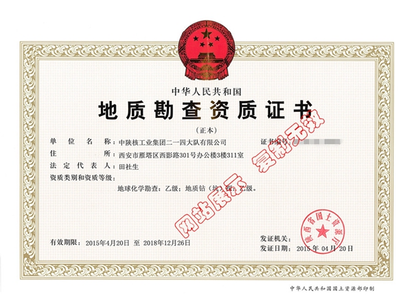 地質勘查資質證書(乙級)