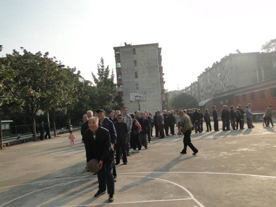上午8點30分,院區(qū)老年同志就陸陸續(xù)續(xù)來到活動室,離退辦主任韓保明就活動意義、項目內(nèi)容及安全事項等作了簡要動員。動員會結(jié)束后,活動在健步行中拉開帷幕,隊伍越走越大,人越來越多,一百多人的長龍顯得非常浩大,大家互相招呼、互相問候,互相祝福,顯得格外親切。隨后,又相繼進(jìn)行了擲飛鏢、投沙包、皮球入門、定點投籃等室外活動項目,每個活動項目前都排起了長隊,有的拄著拐杖、有的在家人的陪伴下坐著輪椅來到了活動現(xiàn)場,享受著大家庭的溫暖。隨后繼續(xù)將在室內(nèi)展開象棋和撲克雙扣比賽活動。