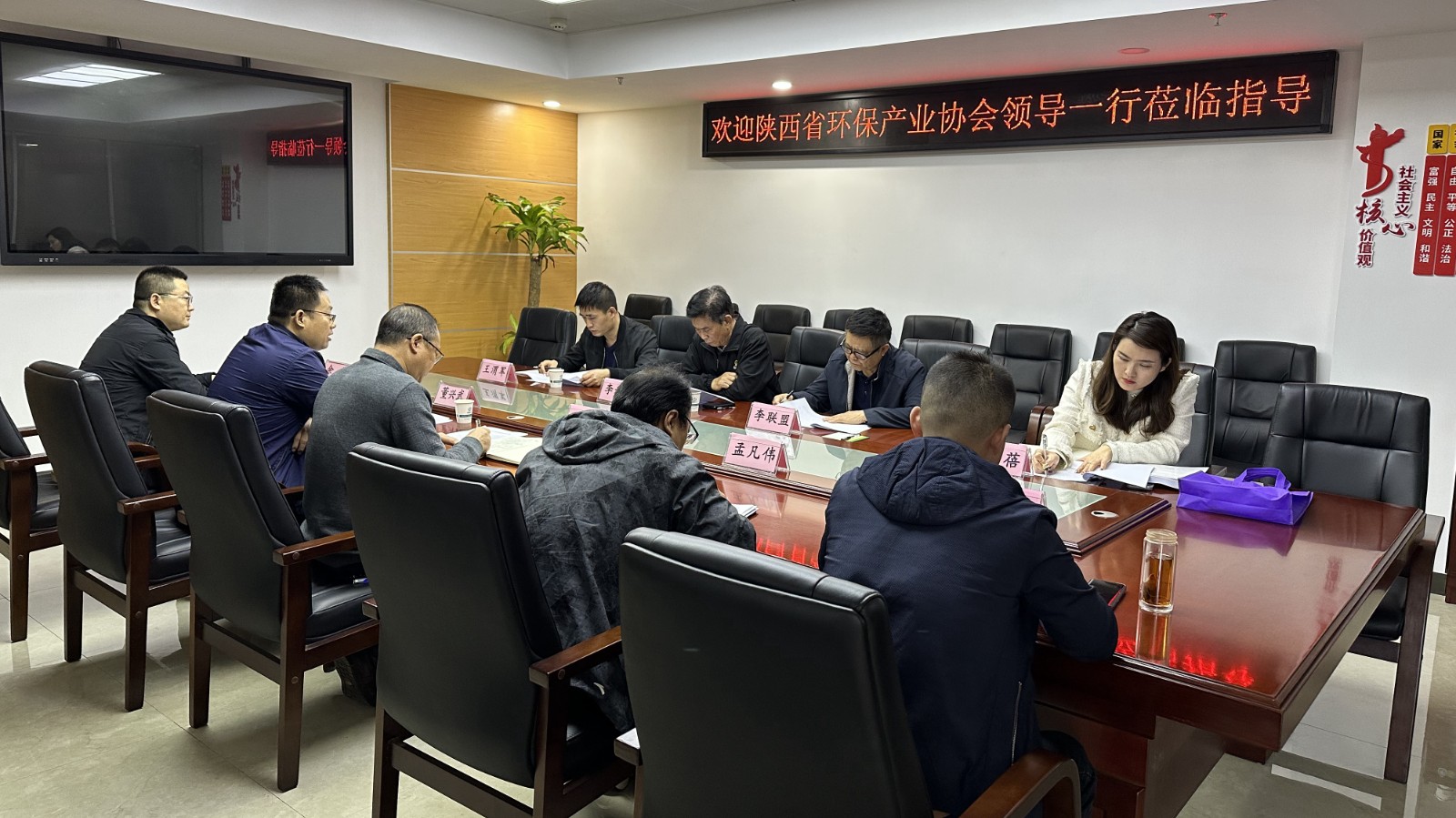 陜西省環(huán)保協(xié)會(huì)高級(jí)顧問李聯(lián)盟、副秘書長王渭軍、會(huì)員部主任樊蓓,公司經(jīng)發(fā)部、行政部、水工環(huán)院負(fù)責(zé)人參加座談。