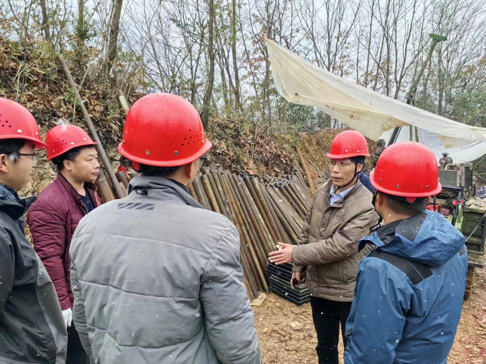 地調院緊抓項目施工,全力保障找礦突破。黃泥坪項目作為公司2024年實現找礦突破,做實礦業開發的重點項目,項目組人員不畏嚴寒,克服冬季施工困難,搶抓施工進度,截至26日,已經完成新年兩個鉆孔的施工任務,從鉆孔巖芯編錄和取樣分析結果來看,礦化蝕變帶走向及傾向延伸均較穩定,其中在ZK21101中圈定4條金礦(化)體,在ZK20906中圈定2條金礦(化)體,進一步證明了前期的成礦規律認識,為下一步擴大找礦成果奠定了堅實的基礎。