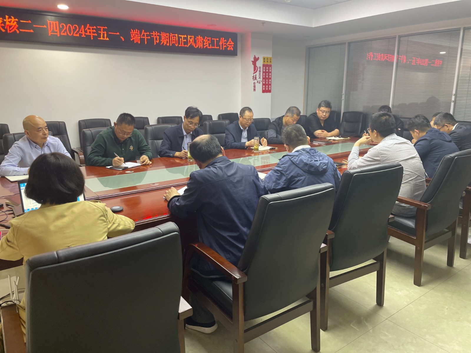 最后,黨委書記、董事長鄧盛波對重點單位、部門負責人進行了集體廉政談話。要求黨員干部時刻緊繃紀律規矩之弦,堅守道德、法律和廉潔底線,不觸碰“紅線”,經受住節日“廉關”的考驗,共同度過一個風清氣正、廉潔文明的節日!