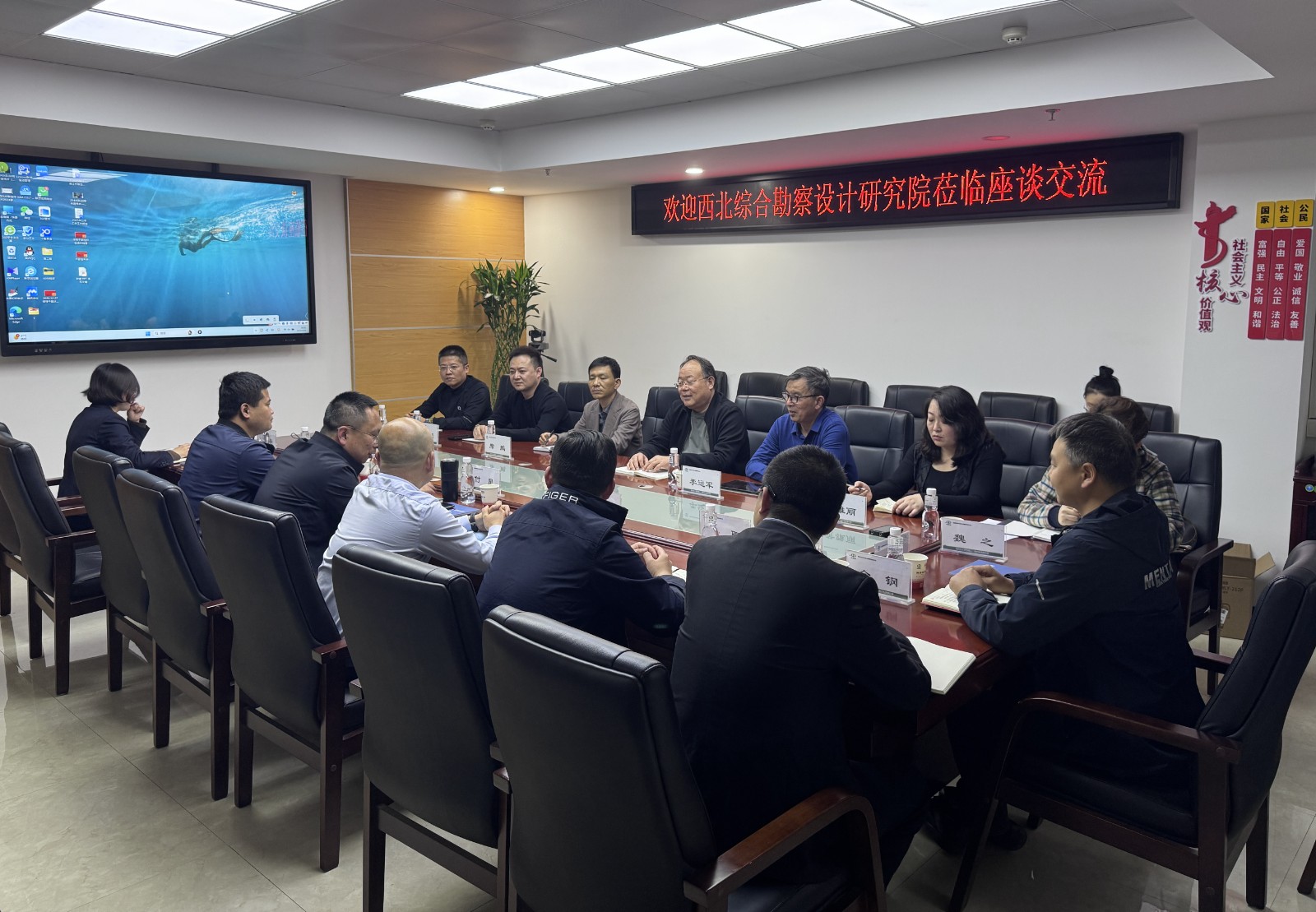 3月24日下午,集團公司總工程師、西北綜合勘察設計研究院黨委書記、院長燕建龍一行到公司開展座談交流,公司黨委書記、董事長付星主持會議。