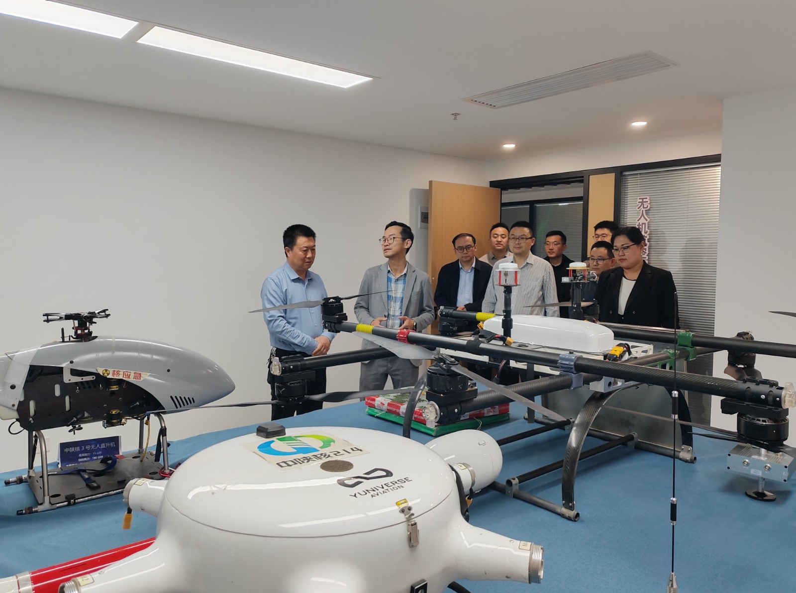 會后,到訪人員共同參觀調研公司無人機航空物探創(chuàng)新工作室。