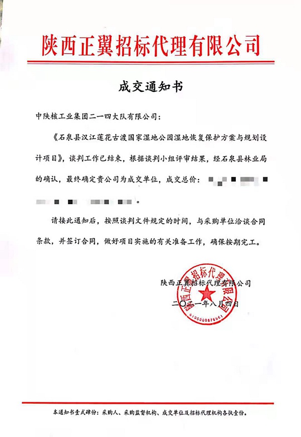 該項目主要是為秦嶺濕地保護恢復示范推廣制定方案,為2021年中央財政林業改革發展資金濕地建設項目制定規劃設計。自招標公告發布以來,公司石泉項目部積極組織參與競標,充分發揮在當地各類林業調查規劃設計工作的基礎優勢,在評標中預算依據準確、報價合理、技術方案符合石泉縣經濟社會發展多項規化、切實可行,最終在競爭性談判中脫穎而出,成功中標。
