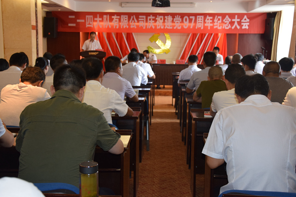 2018年6月29日下午,二一四大隊有限公司在城固燎原酒店隆重舉行召開慶祝建黨97周年紀念暨表彰黨內先進大會,公司領導、黨員干部共60人參加了會議,會議由黨委委員、總工程師王義忠主持。