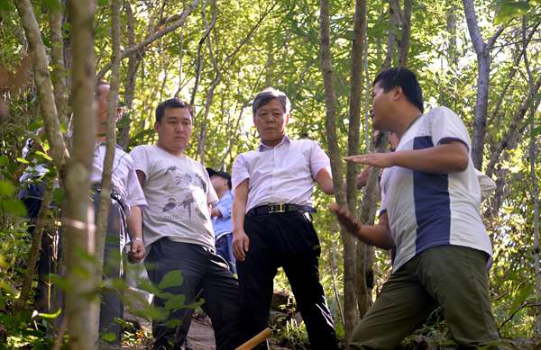 考察組來到公司盤龍村項目實地查看了KⅧ號晶質石墨礦帶。縣委書記陳心亮、陜西理工大學黨委書記劉保民詳細詢問了目前的工作進展,項目人員現場進行了解答。公司地調院副院長高政偉向考察組重點匯報了公司在晶質石墨礦找礦方面的突出成果,并詳細介紹了KⅦ、KⅧ號2條礦帶品位、厚度、片徑大小、規模及資源量等特征。