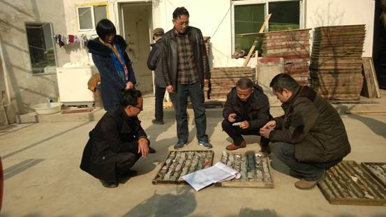 在野外項目部,王建國總工程師一行查看了南沙河項目Zk6301、ZK7901、ZK7902、ZK0001鉆孔的巖心實物,并與項目負責和技術負責進行交談,指導年青技術人員怎樣觀察巖心、怎樣觀察巖心中的維系構造、礦物組分、蝕變特征等,要求項目上技術人員應多觀察巖心,將巖心與地表特征細心對比,與相鄰勘探線的鉆孔巖心對比,找出相互關系,總結規律,指導下步找礦。