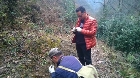 公司總工程師王義忠和總工辦主任涂宏一行,在寧強(qiáng)中壩子項(xiàng)目負(fù)責(zé)陪同下,從中壩子村移民新區(qū)出發(fā),沿著崎嶇的山路,一路翻過(guò)5道梁,越過(guò)4條溝;穿青岡林,爬茅草坡;穿過(guò)幽靜的小溪,爬過(guò)羊腸小路的陡峭,身上的衣服濕了又干,干了又濕,歷時(shí)4個(gè)小時(shí),上到相對(duì)高差300米的龍洞渠溝頭的大梁,追索寧強(qiáng)中壩子項(xiàng)目在后期工作中發(fā)現(xiàn)的重晶石礦點(diǎn)。