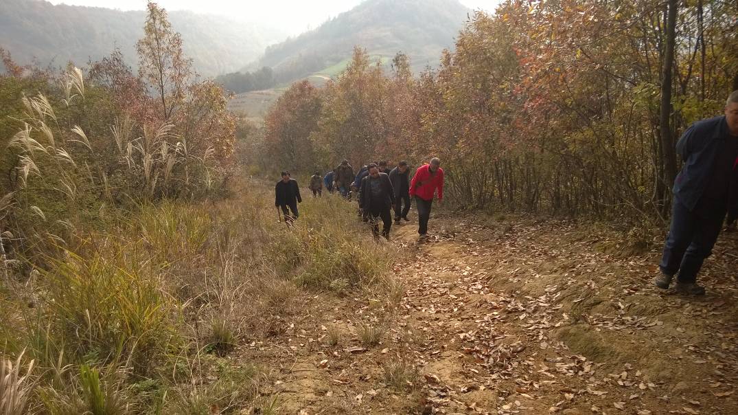 野外踏勘在11月19日全天進行,根據時間和項目分布情況,會議安排對西鄉縣秋樹坪項目金Ⅰ礦化體、寧強縣南沙河項目車渡礦段、黃泥坪項目石罐子礦段進行了野外實地踏勘。從早晨8點出發到全程踏勘結束已是晚上7點。期間,領導和專家組不辭辛苦,不顧休息,翻山越嶺,深入項目探槽揭露工程、巖心庫、礦化出露點進行詳細查看和研究,對總體項目進展和找礦成果等情況有了較為詳細掌握。