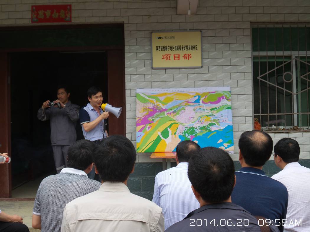 下午室內會議先由各承擔整裝勘查單位做項目匯報。214大隊承擔的寧強縣劉家坪—寬川鋪金多金屬礦整裝勘查項目由二一四大隊地調院總工王鵬匯報。項目匯報完后,各承擔單位、整裝勘查涉及的市縣領導分別作表態發言,陜核集團王建國總工在表態發言中提出了實施好整裝勘查要“處理好四種關系、解決好四個問題”,進一步明確了整裝勘查實施的方略。