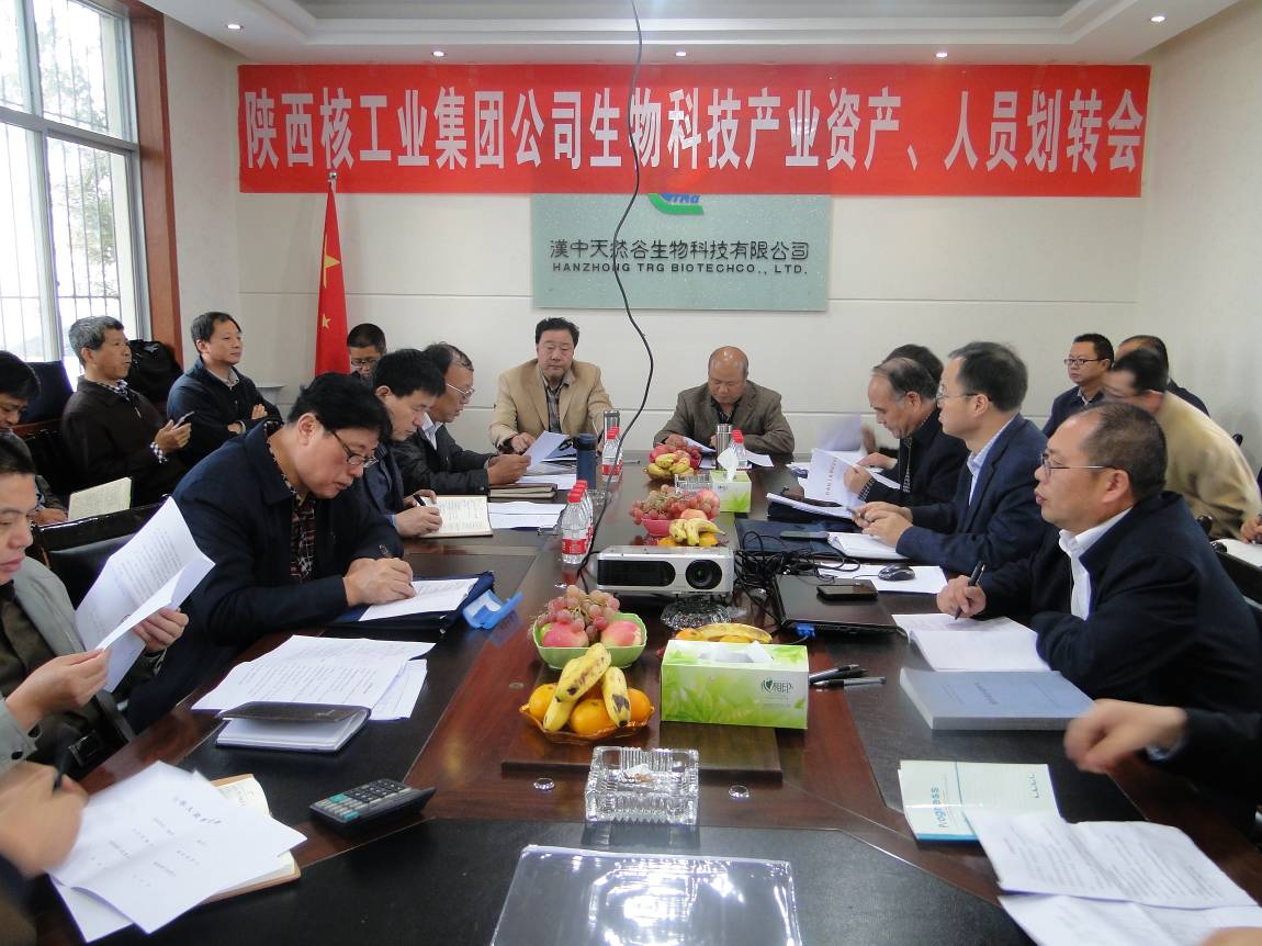 會上,集團公司經發處處長穆長偉宣讀了《關于整合生物科技產業的決定》,人事教育處處長鄭建國宣布了對天然谷公司在職人員劃轉的意見。財務處副處長郭萬才主持了資產移交儀式,陜西天谷公司董事長李新平、核鑫礦業公司總經理雷新虎、214大隊副大隊長皮紅芳分別代表各方在移交資料上簽字,并做了講話。