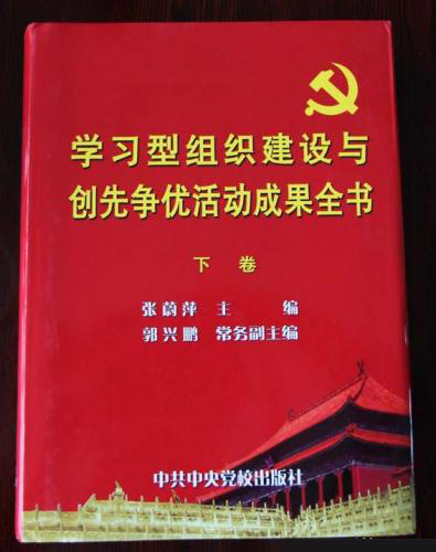 《學(xué)習(xí)型組織建設(shè)與創(chuàng)先爭(zhēng)優(yōu)活動(dòng)成果全書(shū)》是由全國(guó)思想政治工作科學(xué)專業(yè)委員會(huì)編撰的大型文獻(xiàn),分上、下兩卷,約400萬(wàn)字,已于今年年初由中共中央黨校出版社正式出版。該書(shū)主要收錄對(duì)學(xué)習(xí)型組織建設(shè)與創(chuàng)先爭(zhēng)優(yōu)活動(dòng)作出新的理論概括,對(duì)黨建科學(xué)化水平的實(shí)踐經(jīng)驗(yàn)、調(diào)查研究、工作心得作出歸納概括的論文佳作。(消息來(lái)源:王輝)