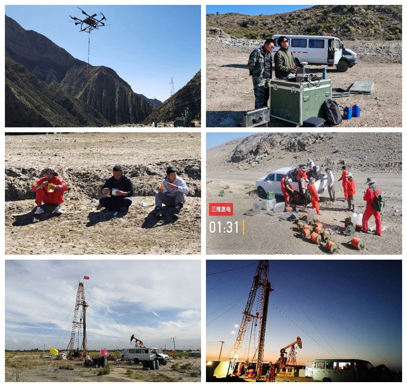 目前正在開展的有新疆富蘊縣航空瞬變項目,新疆富蘊縣三維激電項目和新疆哈密市測井項目。其中,新疆富蘊縣航空瞬變項目無人機搭載物探儀器上天探地,保安全,抓質量,集中力量高效快捷的完成野外施工。新疆富蘊縣三維激電項目,作為采用新方法新技術進入新疆地區的項目,項目組成員克服地形陡峻、嚴寒酷暑等困難,加班加點開展野外施工。新疆哈密市測井項目,日夜兼程奔赴不同的工區,加班加點只為更快更好的完成項目任務。